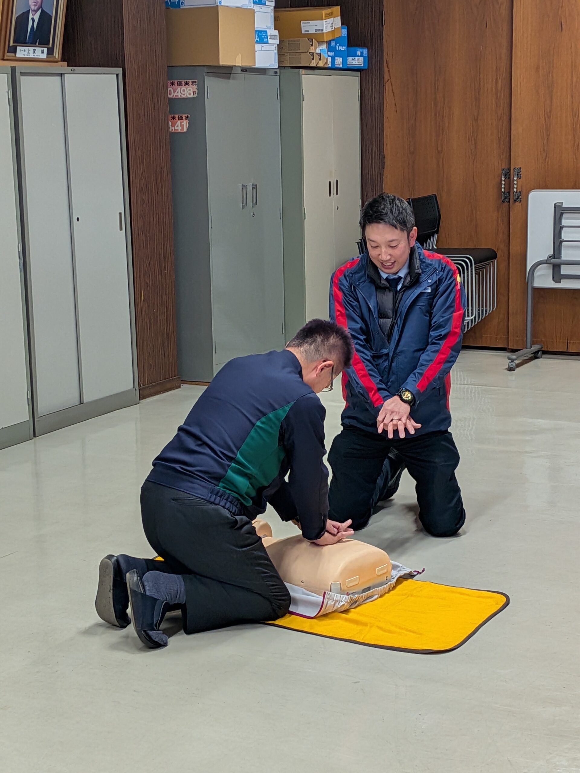 当社では、社員の安全意識向上と緊急時の対応力強化を目的として、11月21日にAED講習会を開催しました。 講師には㈱サニクリ-ンより2名をお迎えし、心肺蘇生法やAEDの使用方法について、実技を交えながら学びました。 実際に体験することで「いざという時に役立つ知識が身についた」との声が多く寄せられました。 今後も定期的に講習会を実施し、新入社員研修にも取り入れるなど、全社員が安心して働ける環境づくりを進めてまいります。